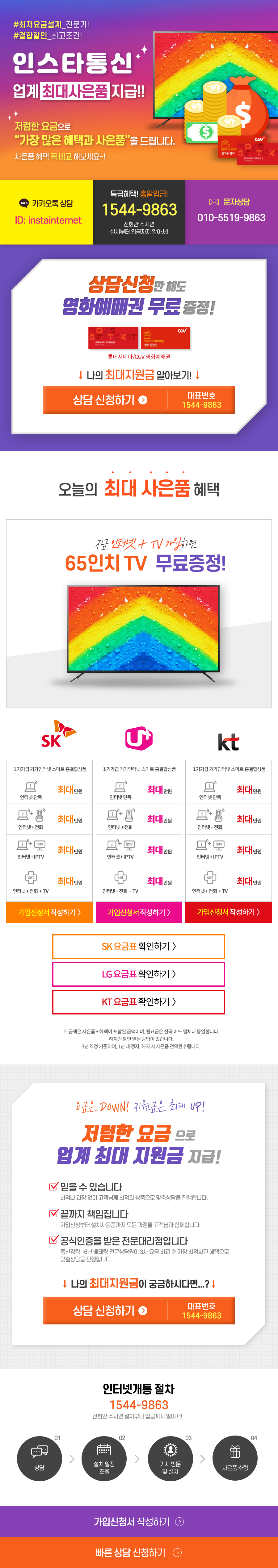 [혜택안내] 인터넷+tv 상담문의만 해주셔도 영화예매권을 무료로 드립니다 ^^ 전액 현금사은품~