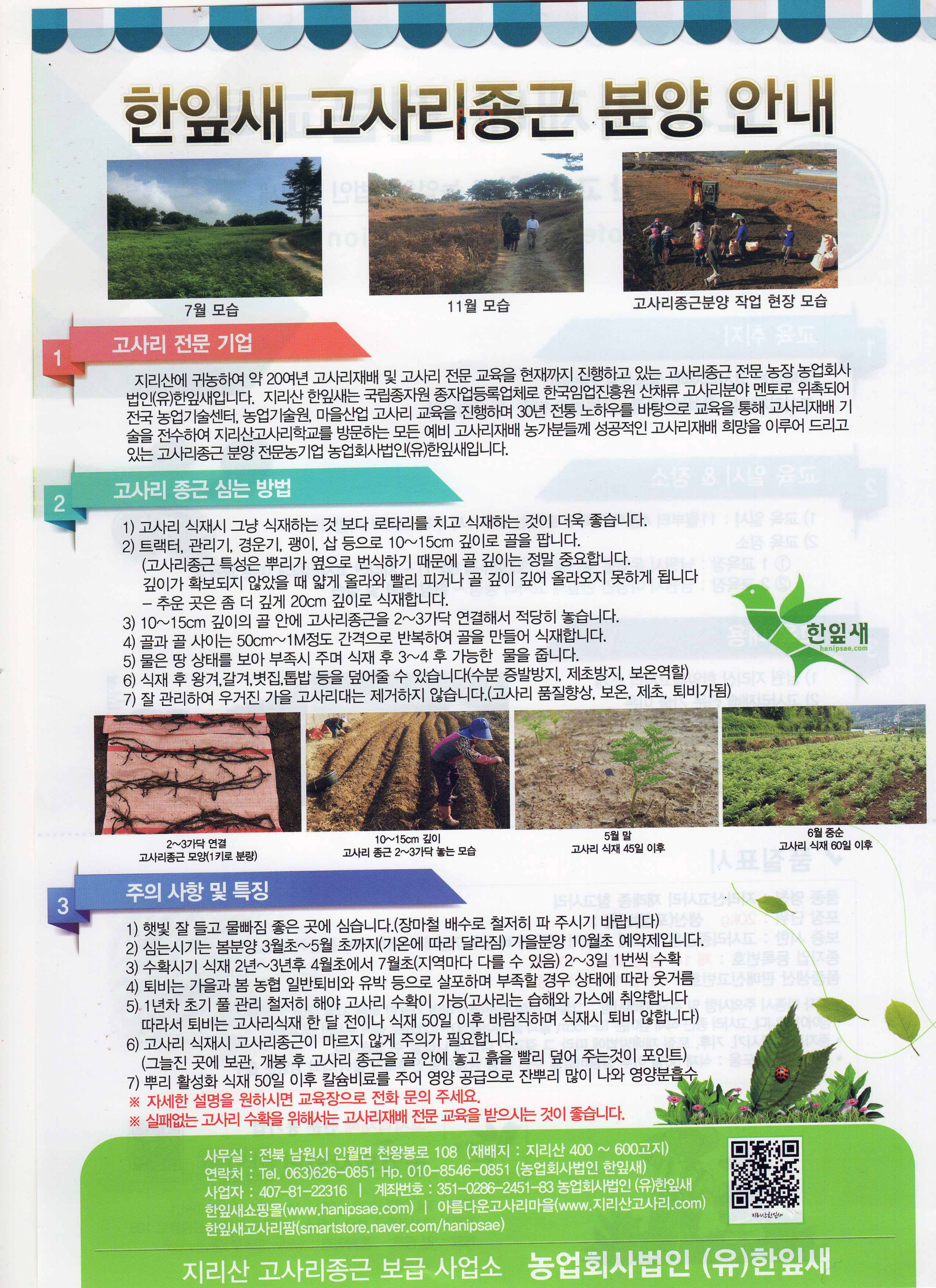 *품질 대비 최저가분양처 : 지리산 고사리종근 분양사업소 - 농업회사법인 유)한잎새