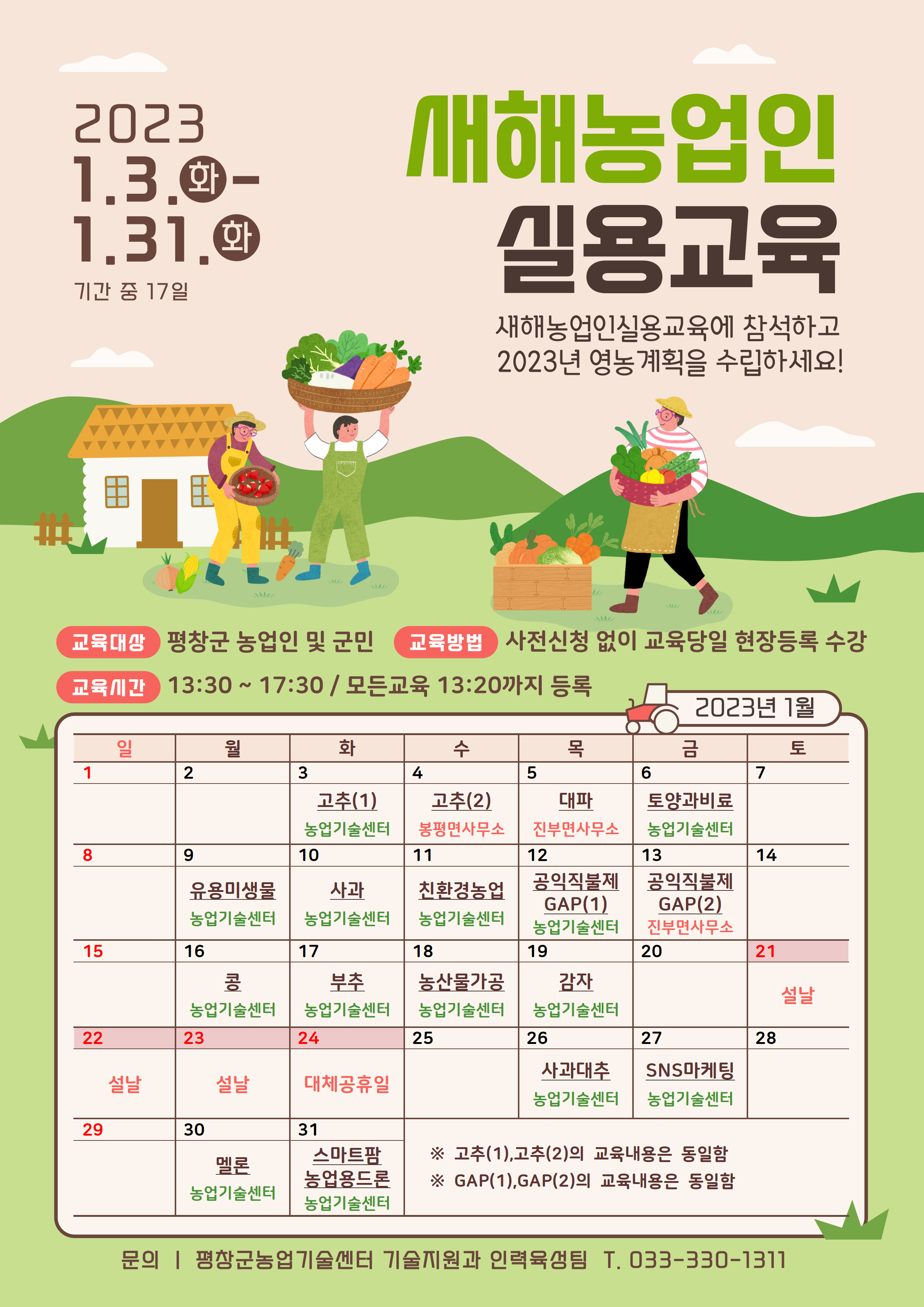 「2023년 새해농업인 실용교육」계획을 아래와 같이 안내해드리오니,
