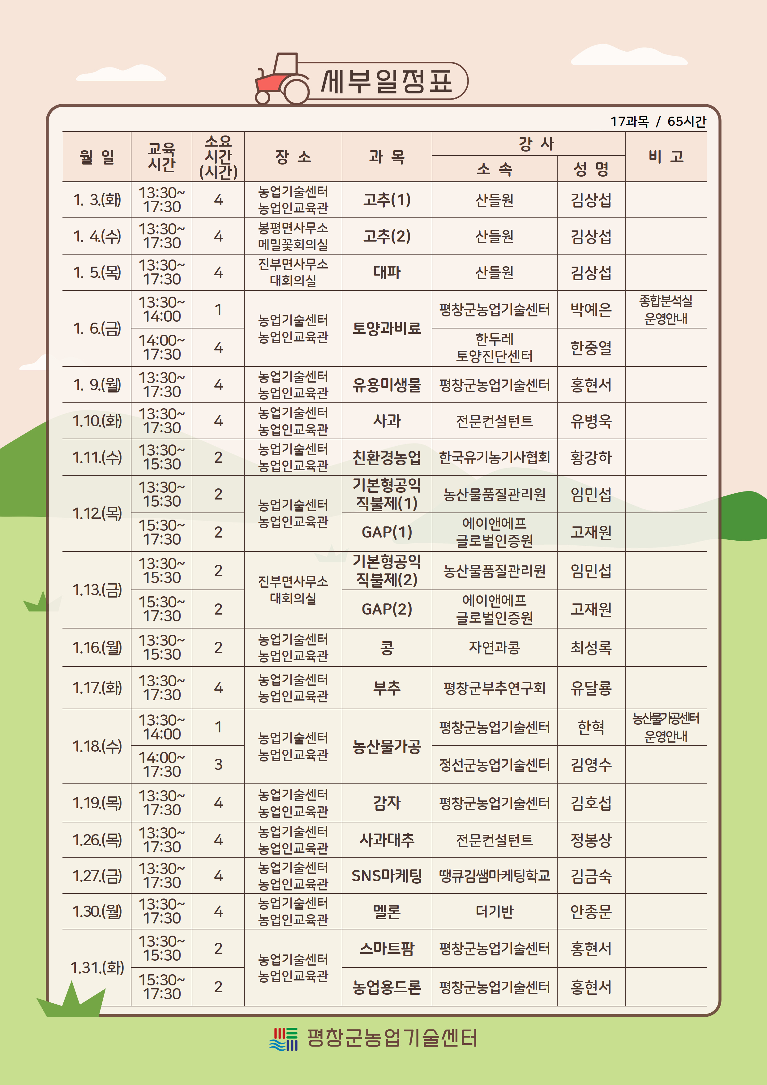 희망농업인께서는 교육일정을 확인하시어 많은 참여 바랍니다^^