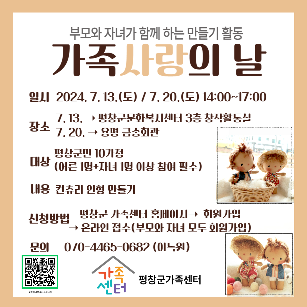 * 평창군가족센터 홈페이지 →https://pyeongchang.familynet.or.kr/