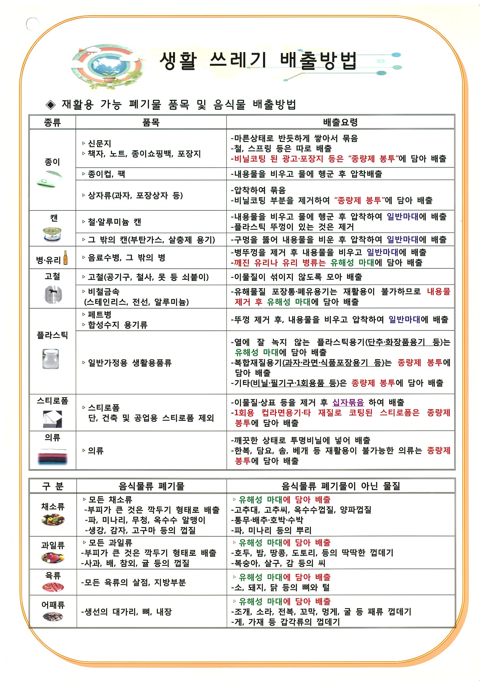봉평면 쓰레기수거일정 및 배출방법 안내