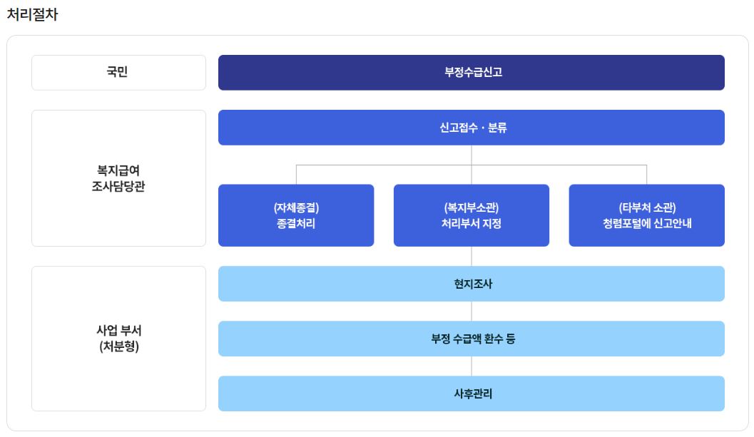 ※ 부정수급 신고자는 「공익신고자 보호법」에 따라 비밀보장, 신변보호조치,