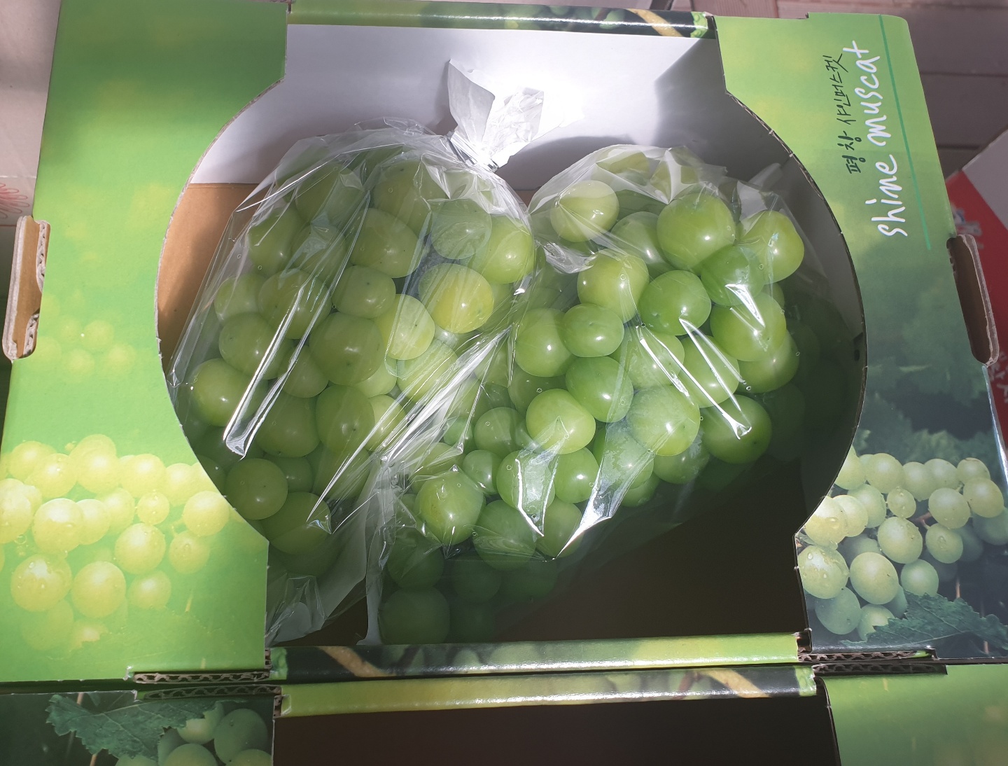 평창 망고포도 샤인머스켓 저렴한 가격에 판매합니다.2KG 한박스(2~3송이) 25,000원에 판매합니다.씨가 없어 어린 아이들과 어르신들도 먹기 편하고 달고 맛있습니다.주진주유소 옆 사과포도농장입니다.