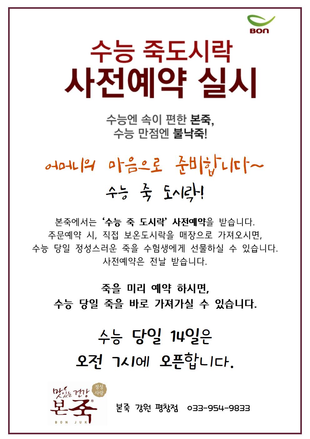본죽에서 '수능 죽 도시락!' 사전예약 받습니다!~