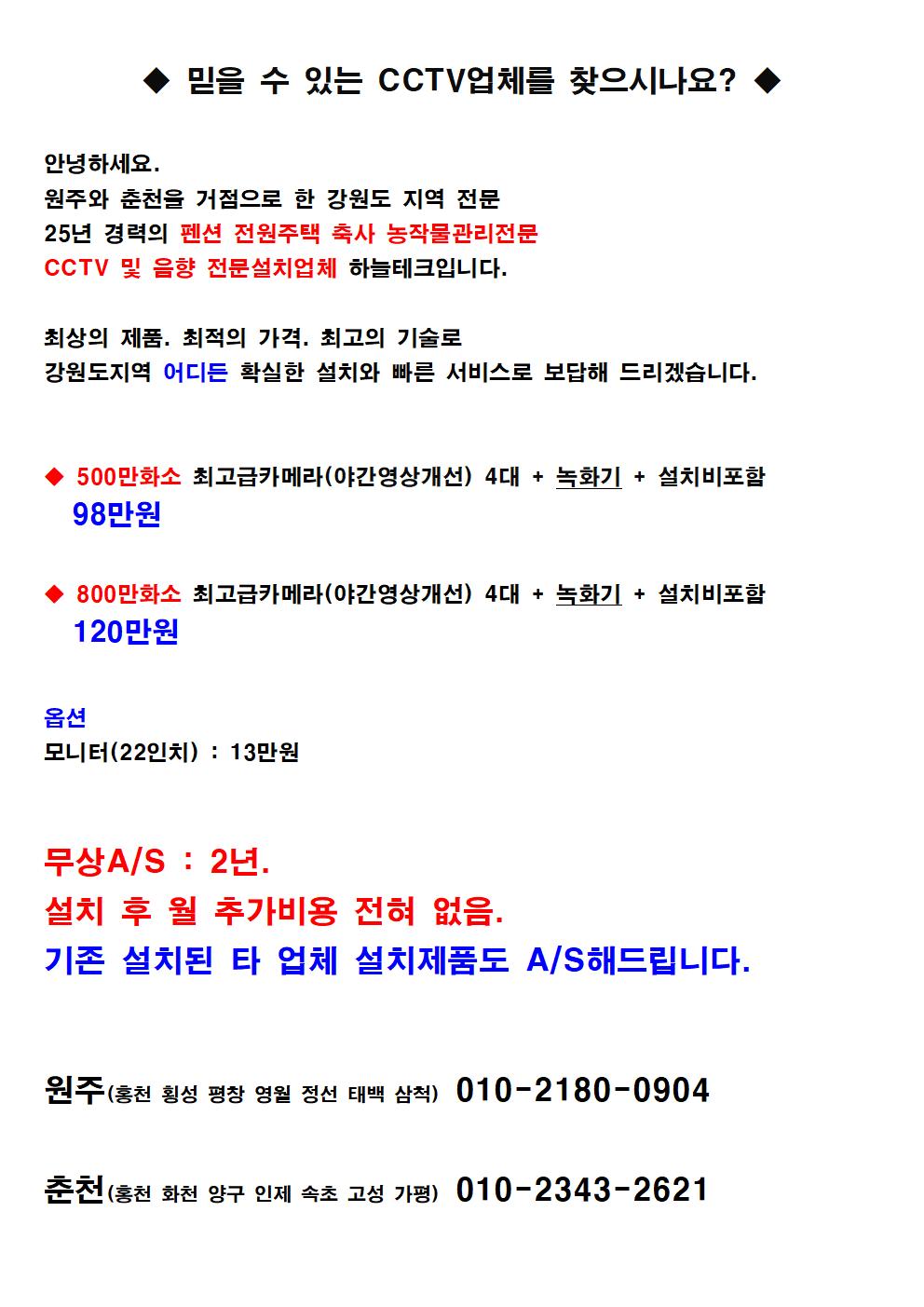 강원지역전문 CCTV(감시카메라)설치