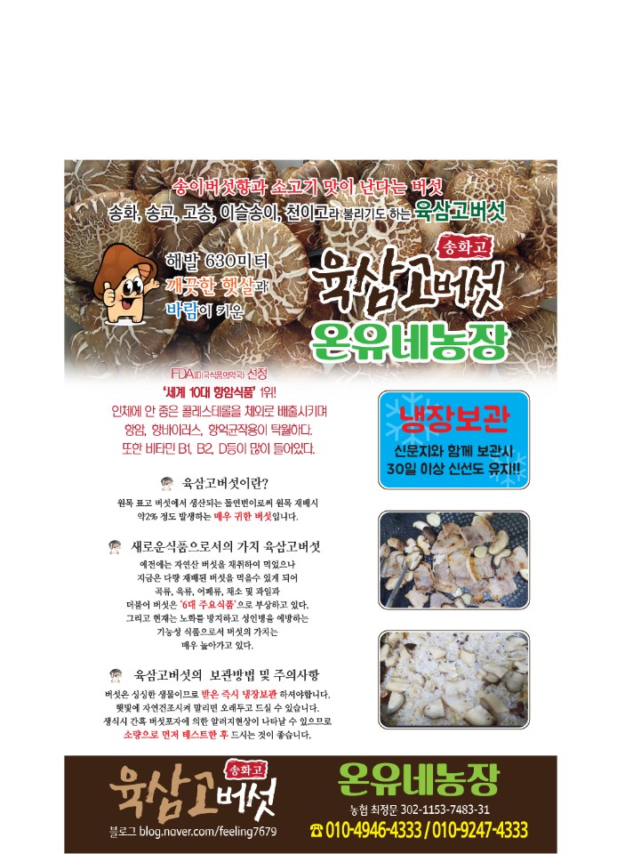 명품육삼고(송화) 버섯으로 감사하고 소중한분들께