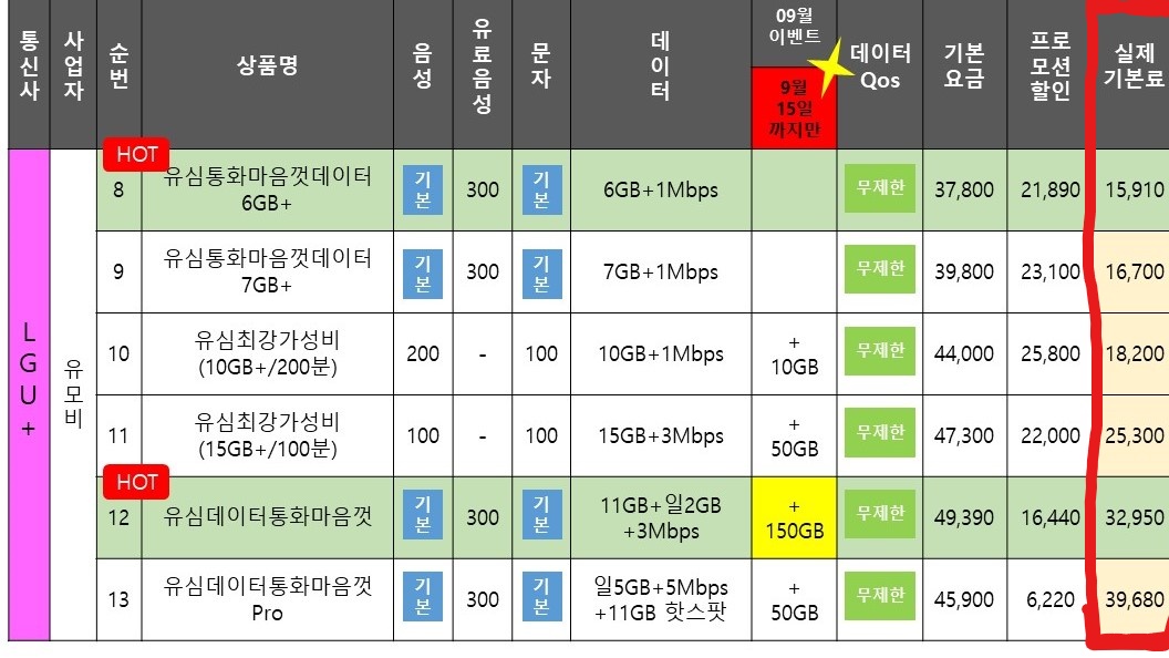 데이터 통화량에 맞게 선택하세요