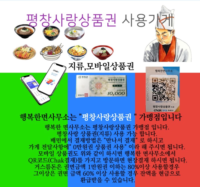 평창사랑상품권 사용가능한 진부면 배달맛집
