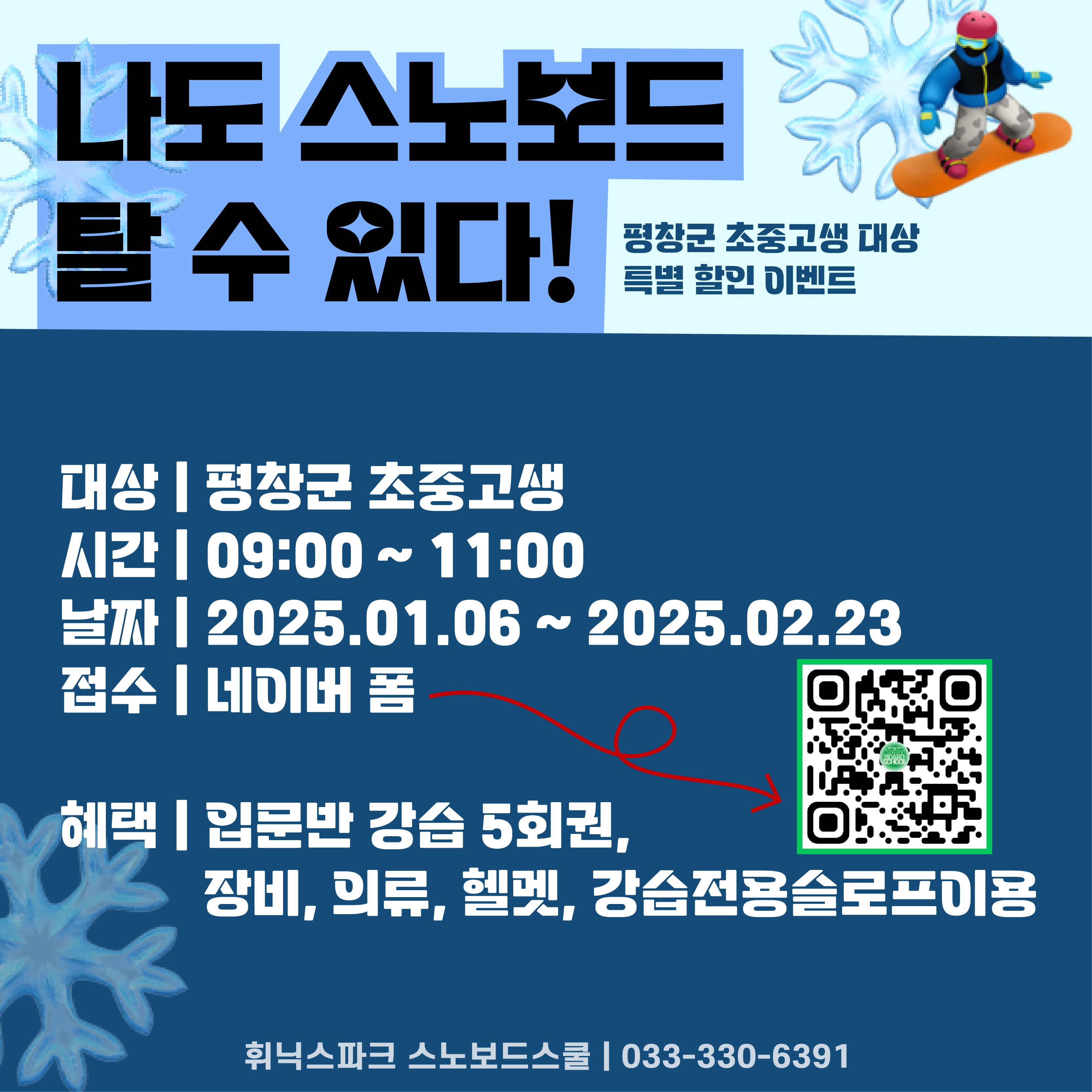 문의: 휘닉스파크 스노보드스쿨 033-330-6391
