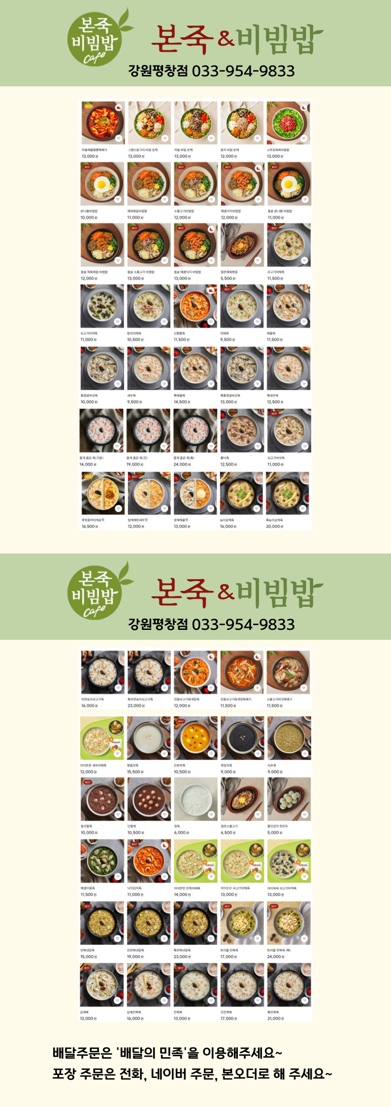 본죽 강원평창점 Tel. 033-954-9833