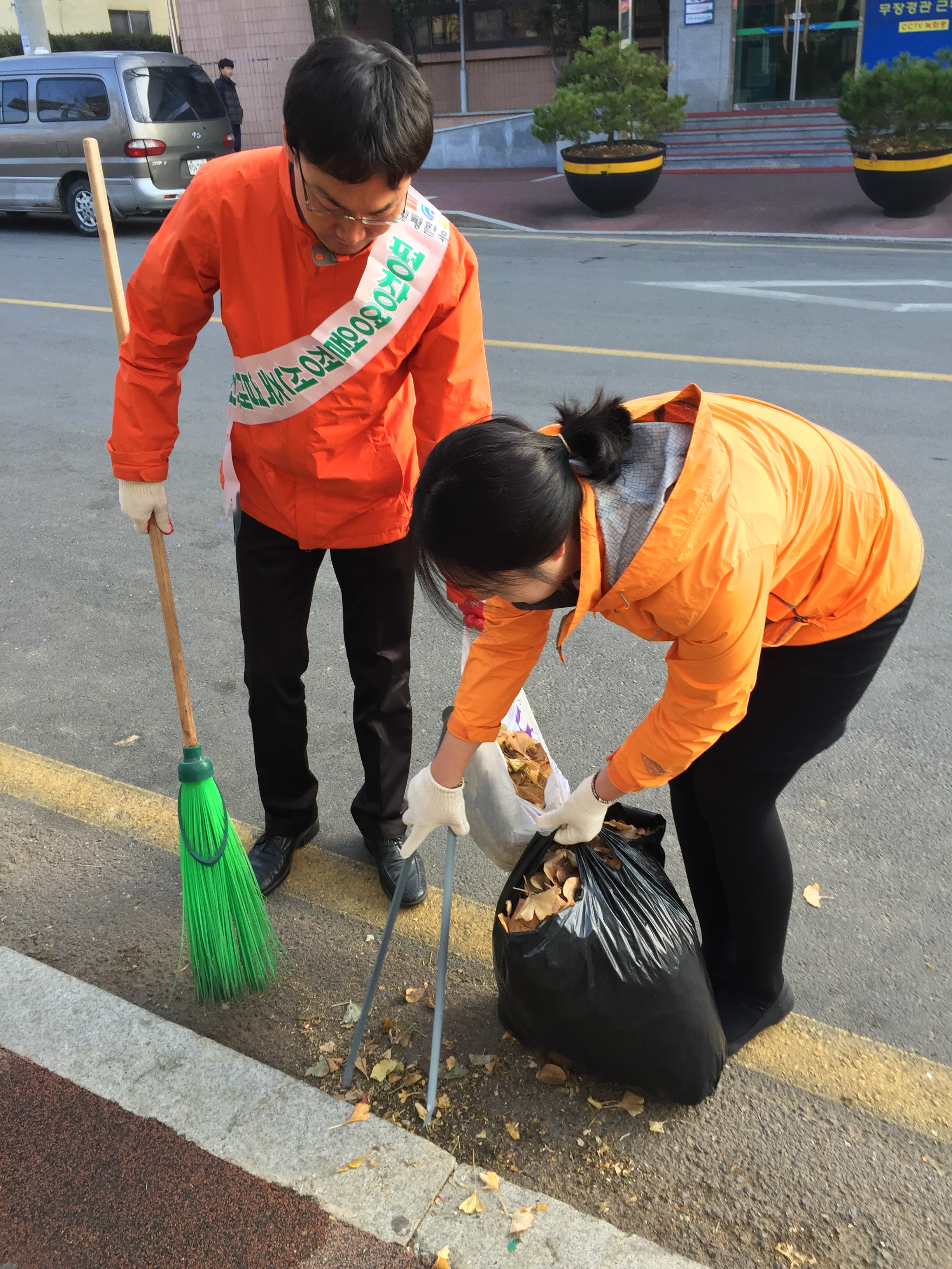 지난(11.4) 08:00 평창영월정선축산농협 대화지점(지점장 이석민)직원 9명은 굿-매너평창 문화시민운동 ‘청결의 날’을 맞아 대화시가지 청소담당구역(축협 주변)에서 환경정화활동을 실시.