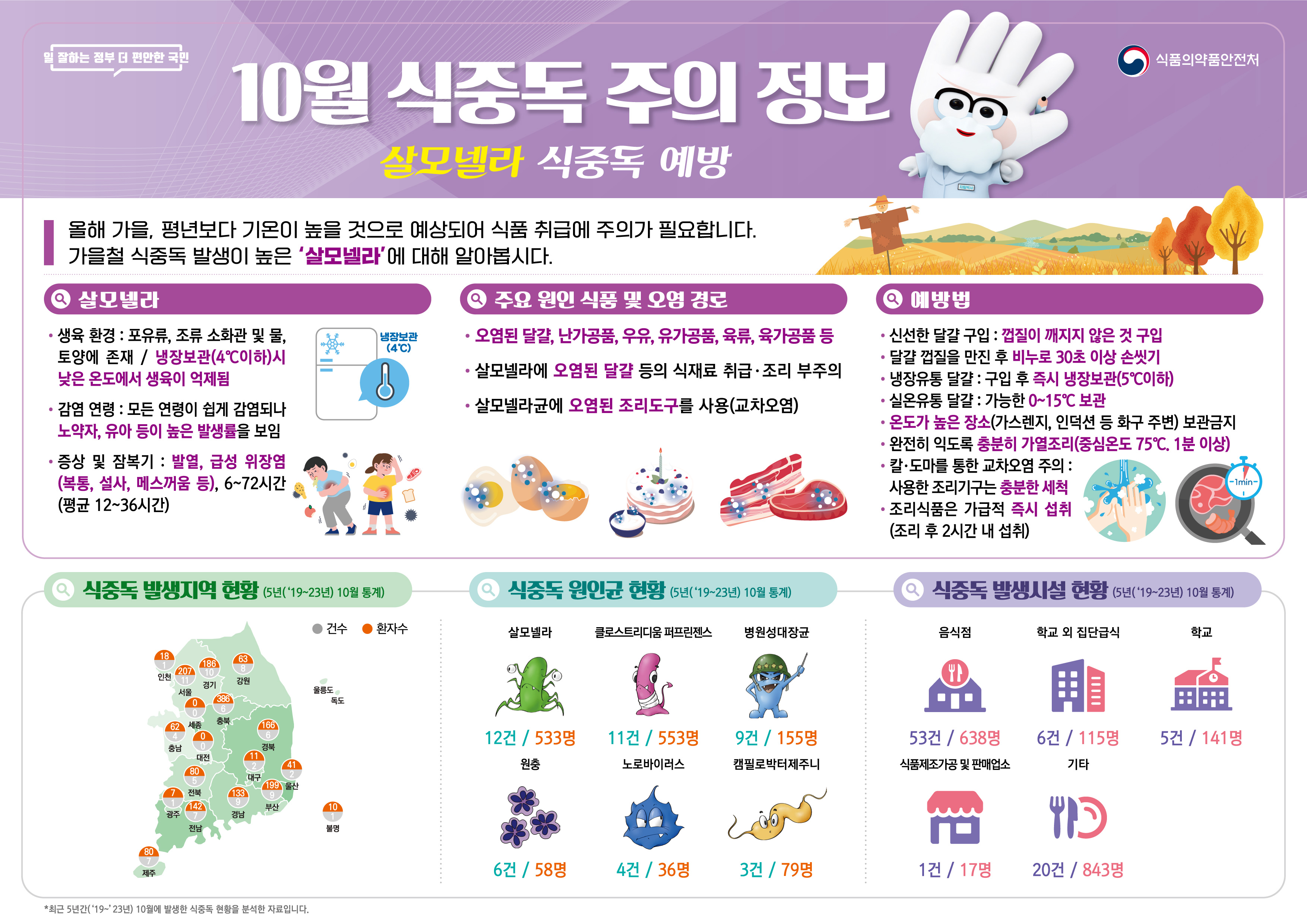 10월 가을, 평년보다 기온이 높을 것으로 예상되어 식품 취급에 각별한 주의가 필요할 것으로 예상됩니다.