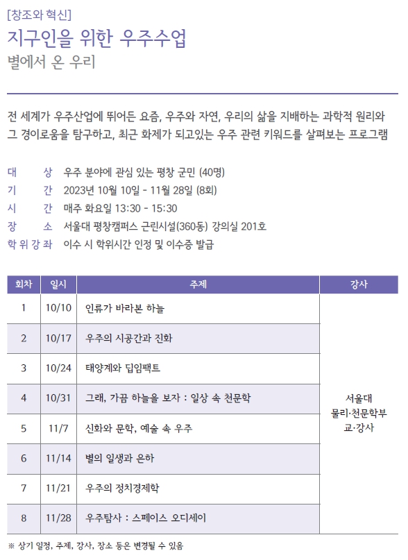 ※ 학위과정은 강의 당일 서울대 평창캠퍼스에서 추가접수 가능 (비학위과정은 현장접수 불가)