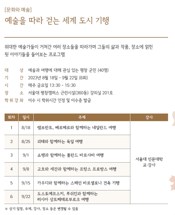 2023년 2학기 "HAPPY700평창 시민대학" 수강생 추가 모집을 아래와 같이 안내합니다.