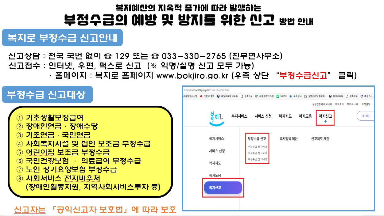 부정수급의 예방 및 방지를 위한 신고 방법 안내