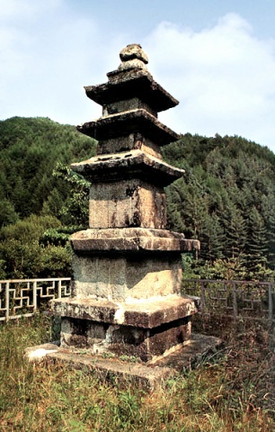 원래 3층 석탑이었으나 현재 기단부와 1층 옥신 사이에는 別石이 2개 삽입되어 있는데 원래부터 이러했는지는 알 수 없다. 이 절은 문헌상으로는 세종실록지리지까지 보이고 동국여지승람부터는 보이지 않는 점으로 미루어볼 때 15세기 경까지는 존속한 것으로 추정된다. 1987년 사지에서 청동반자 1점과 청동촛대 받침 1점이 발견된바 있다. 현재 사지에는 축사일부 및 석탑, 그리고 주변에는 기와편들이 산재하고 있다.