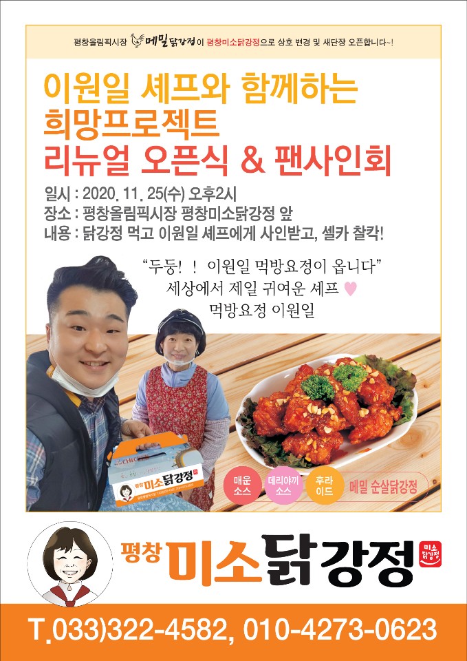 장 소 :  평창올림픽 시장 내 (구)메밀닭강정 자리, 평창차이나 건너편