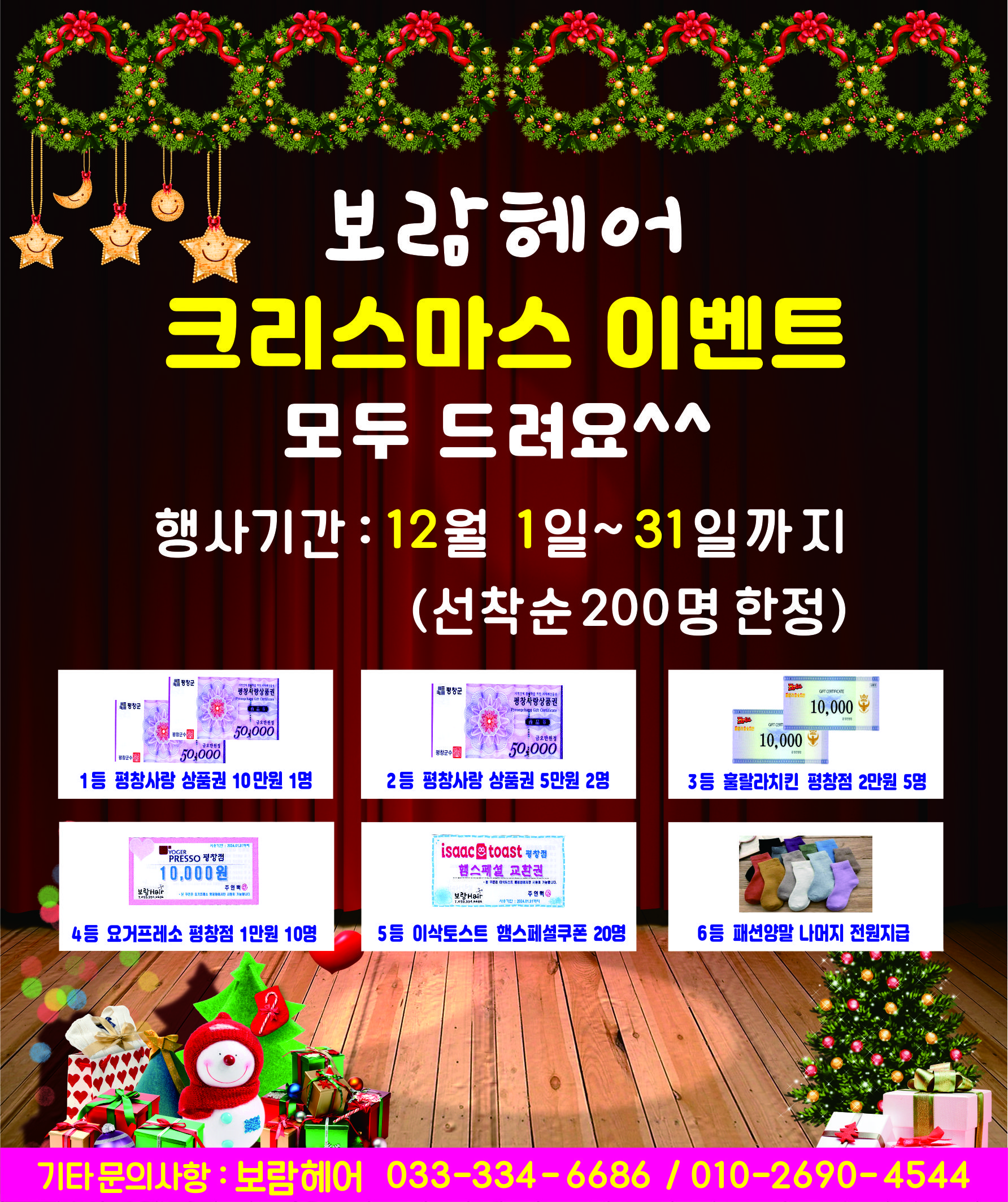*커트, 펌, 염색, 클리닉 시술시 1인 1회에 한하여 뽑기 기회 제공
