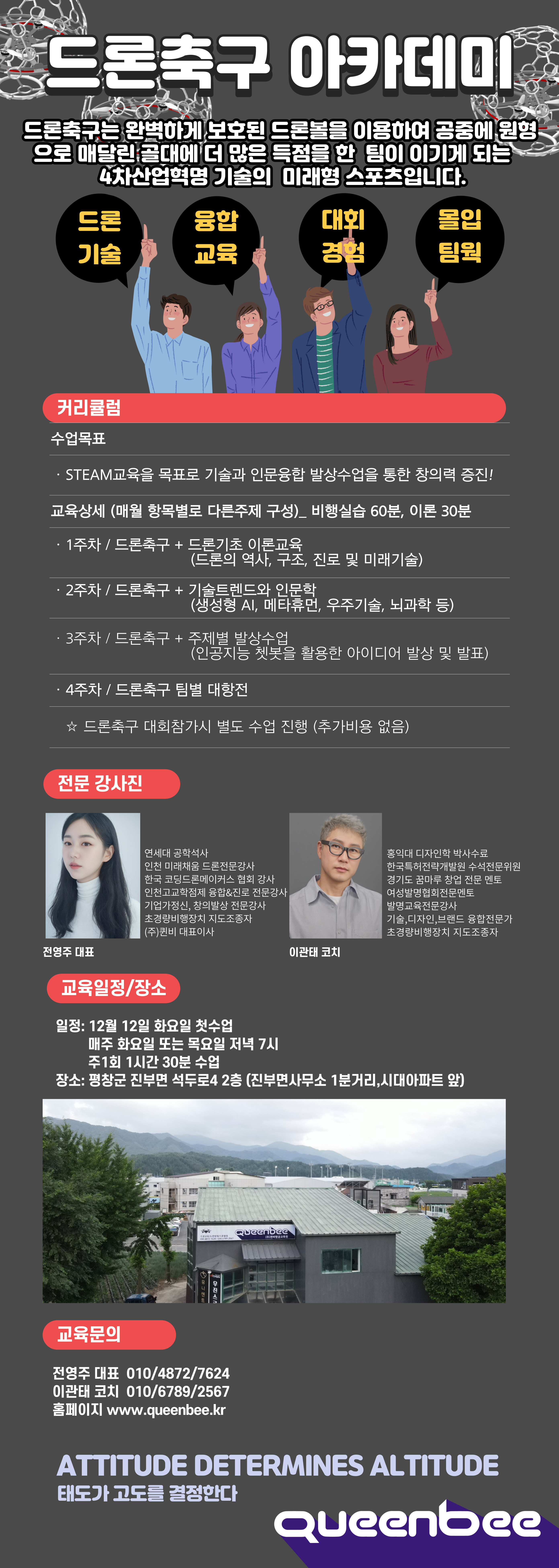 국토교통부 지정 전문교육기관 한국드론기술원에서 2023년 12월 평일반, 주말반 교육생을 모집 합니다