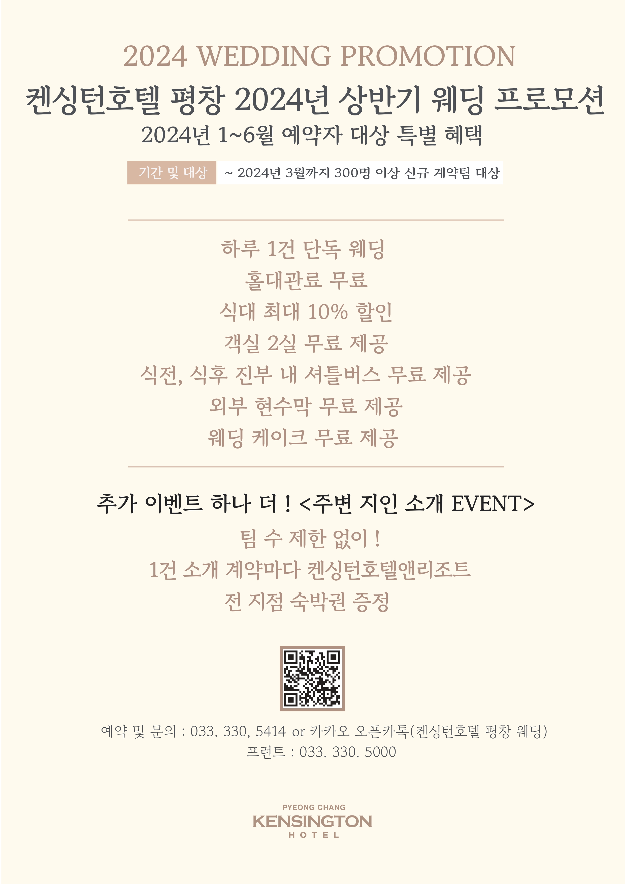 켄싱턴호텔 평창 상반기 웨딩 프로모션