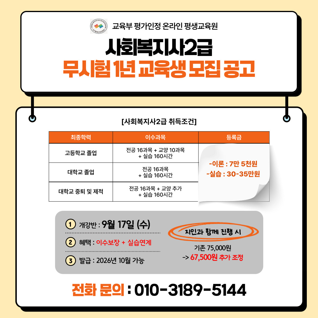 ㉠ 온라인 과목 : 75,000원 (지인 동반 시 5% 추가 할인)