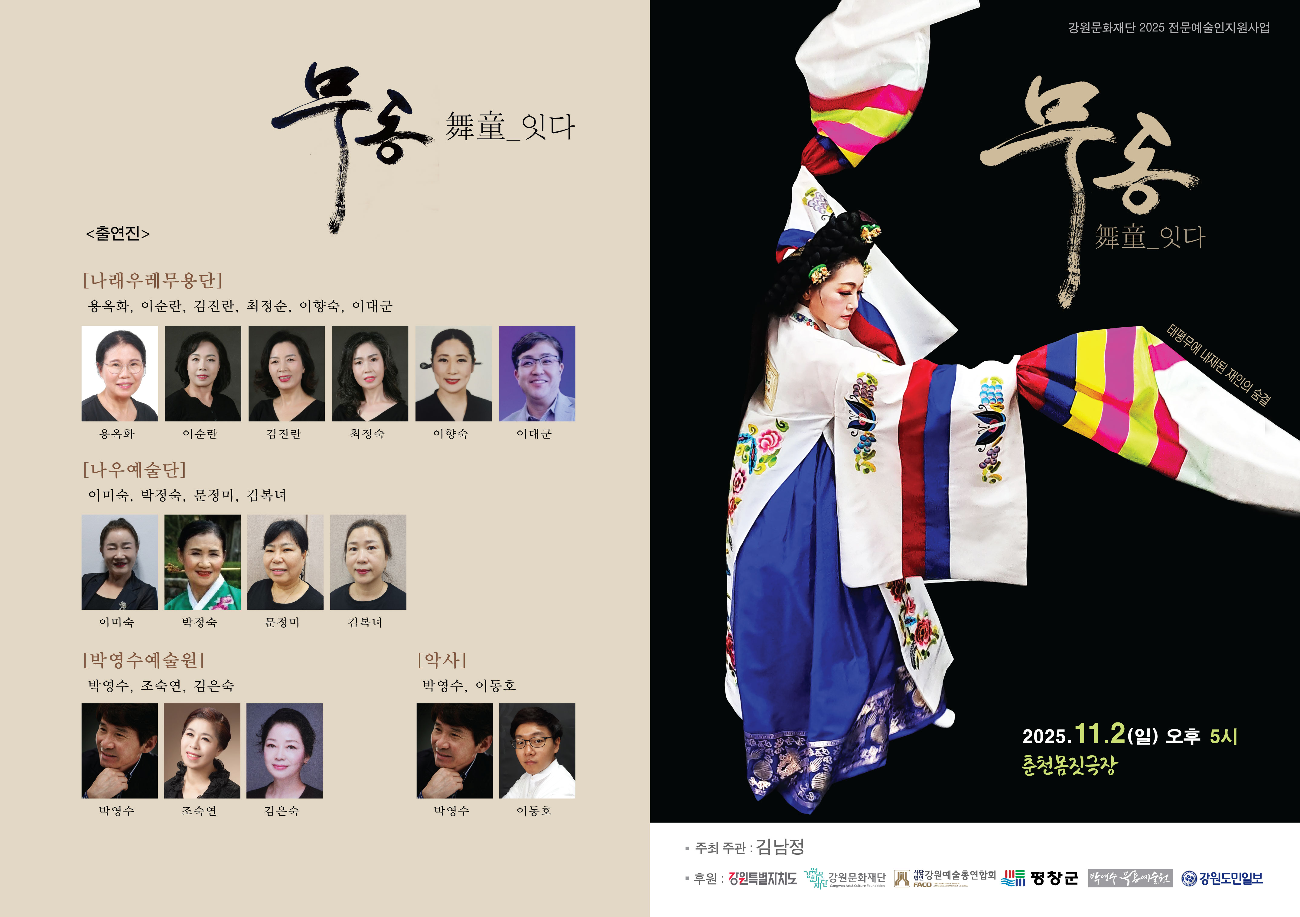 2025년11월2일(일)오후5시에 춘천몸짓극장에서 무동잇다라는 공연이 있습니다. 많은 응원과 격려 부탁드림니다.