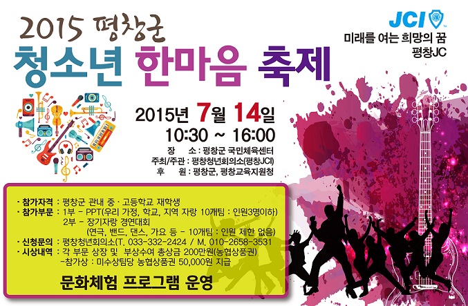 제1회 평창군 청소년 한마음축제 개최 안내 (7/14)