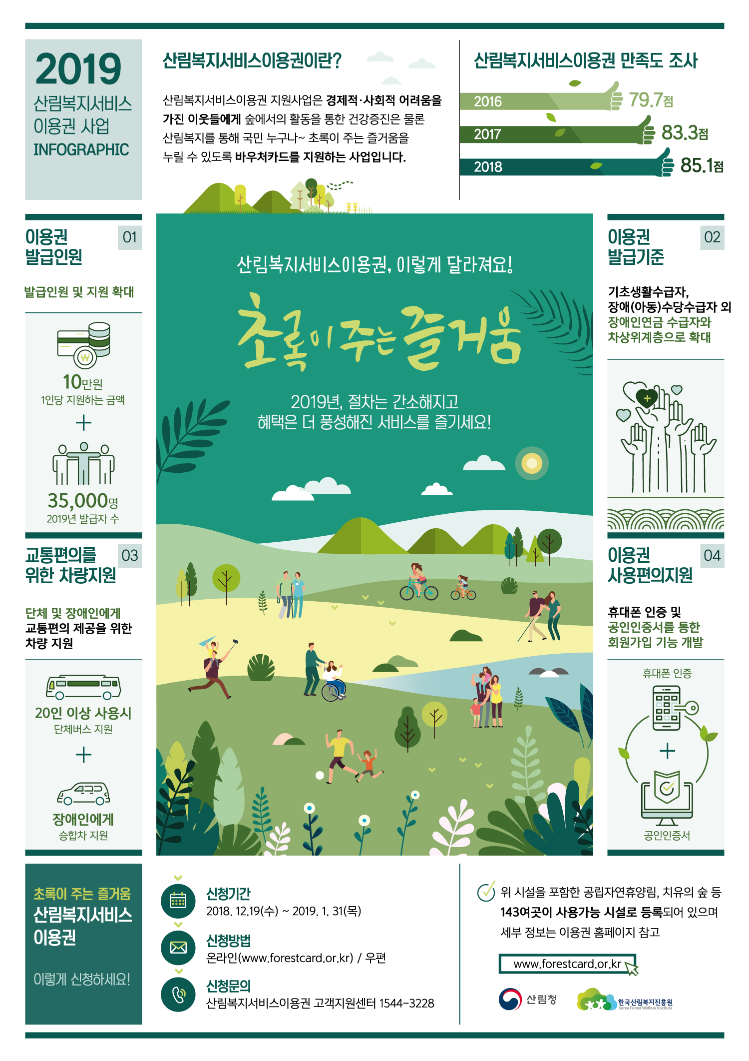 2019년 산림복지서비스이용권 지원사업 신청알림