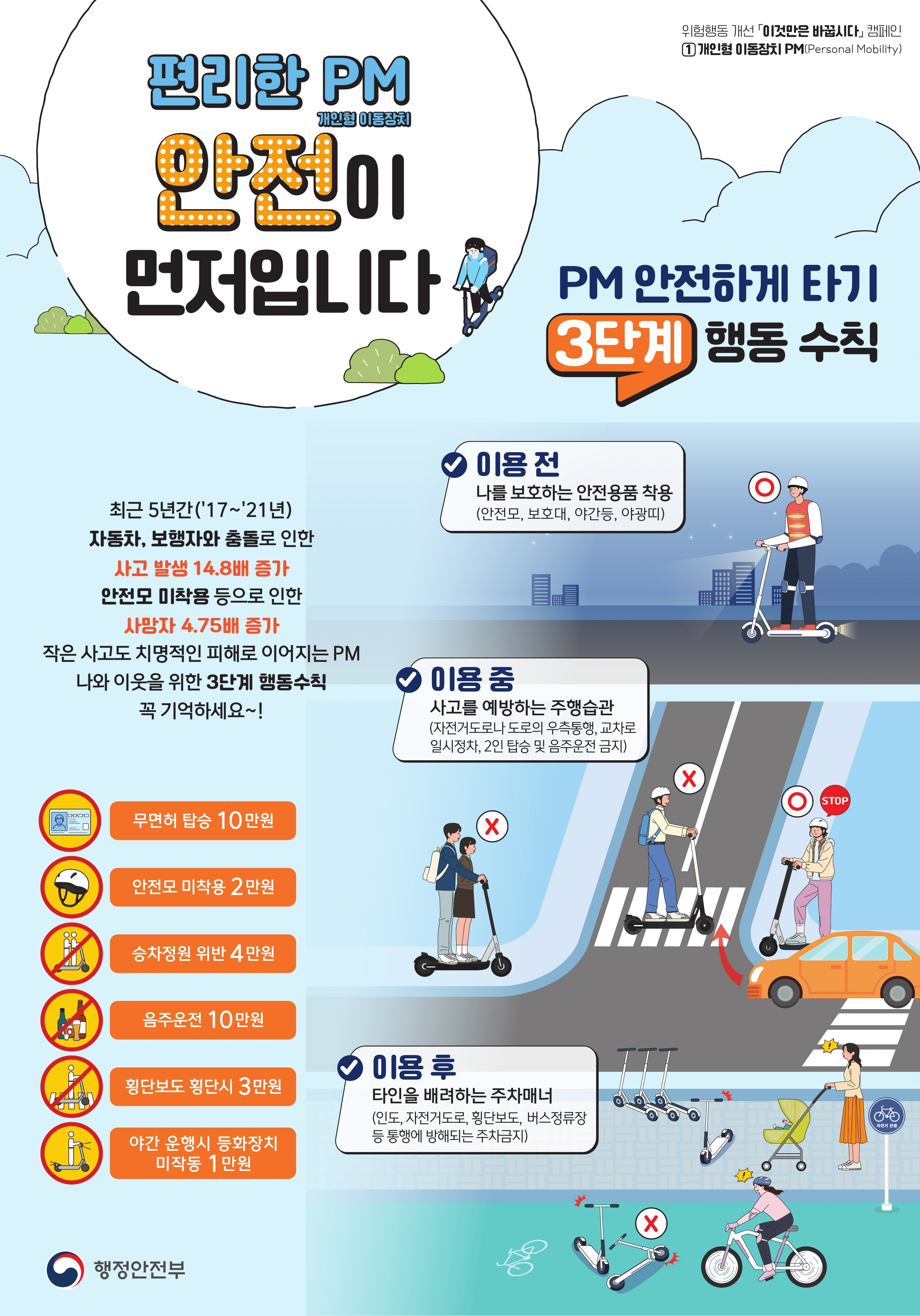 PM 안전하게 타기 3단계 행동수칙 안내