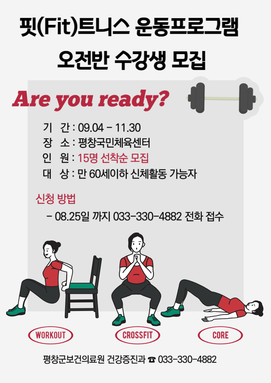 평창군보건의료원에서「핏(Fit) 트니스 운동프로그램 」 진행합니다.