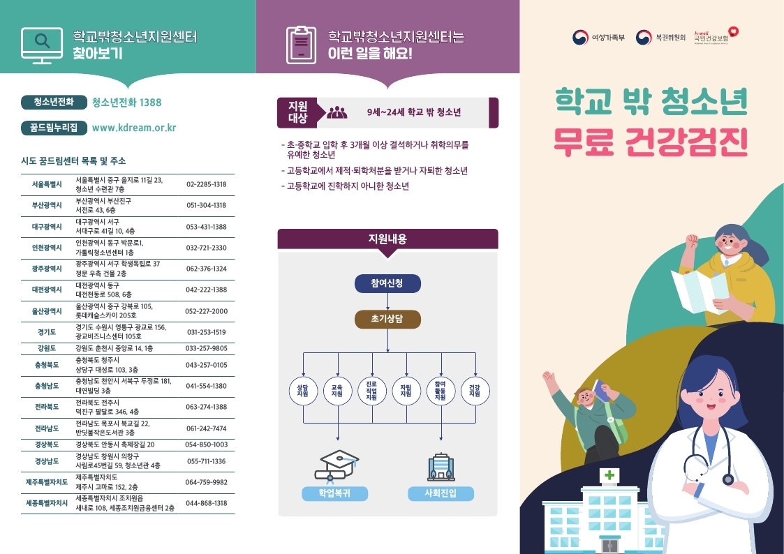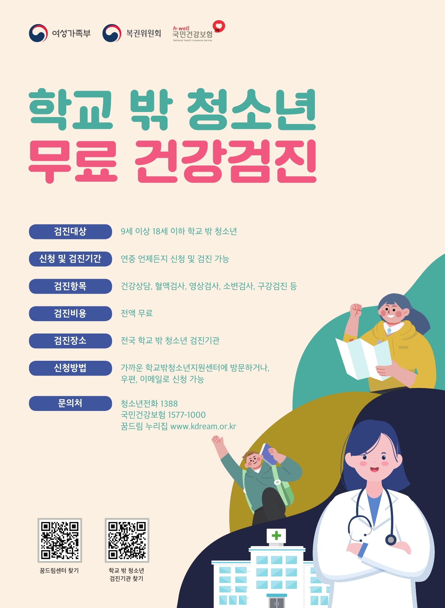 - 문의처 : 청소년전화 1388 / 국민건강보험 1577-14000 / 꿈드림 누리집 www.kdream.or.kr