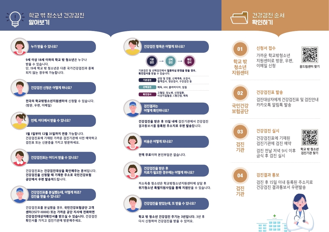 - 검진대상 : 9세 이상 18세 이하 학교 밖 청소년