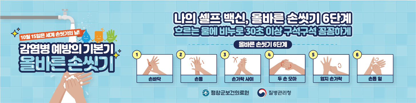 올바른손씻기로 감염병을 이겨내고 건강한 일상으로 나아갑시다.
