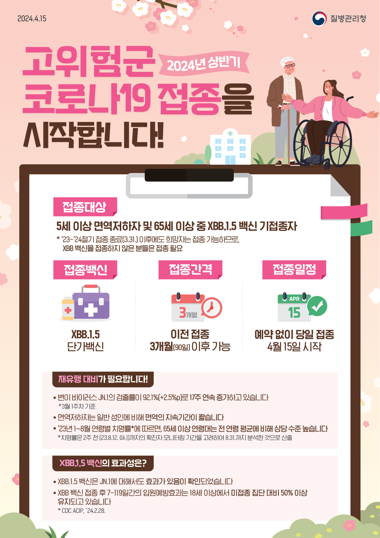 2024년 상반기 고위험군 코로나19 접종 시작합니다~