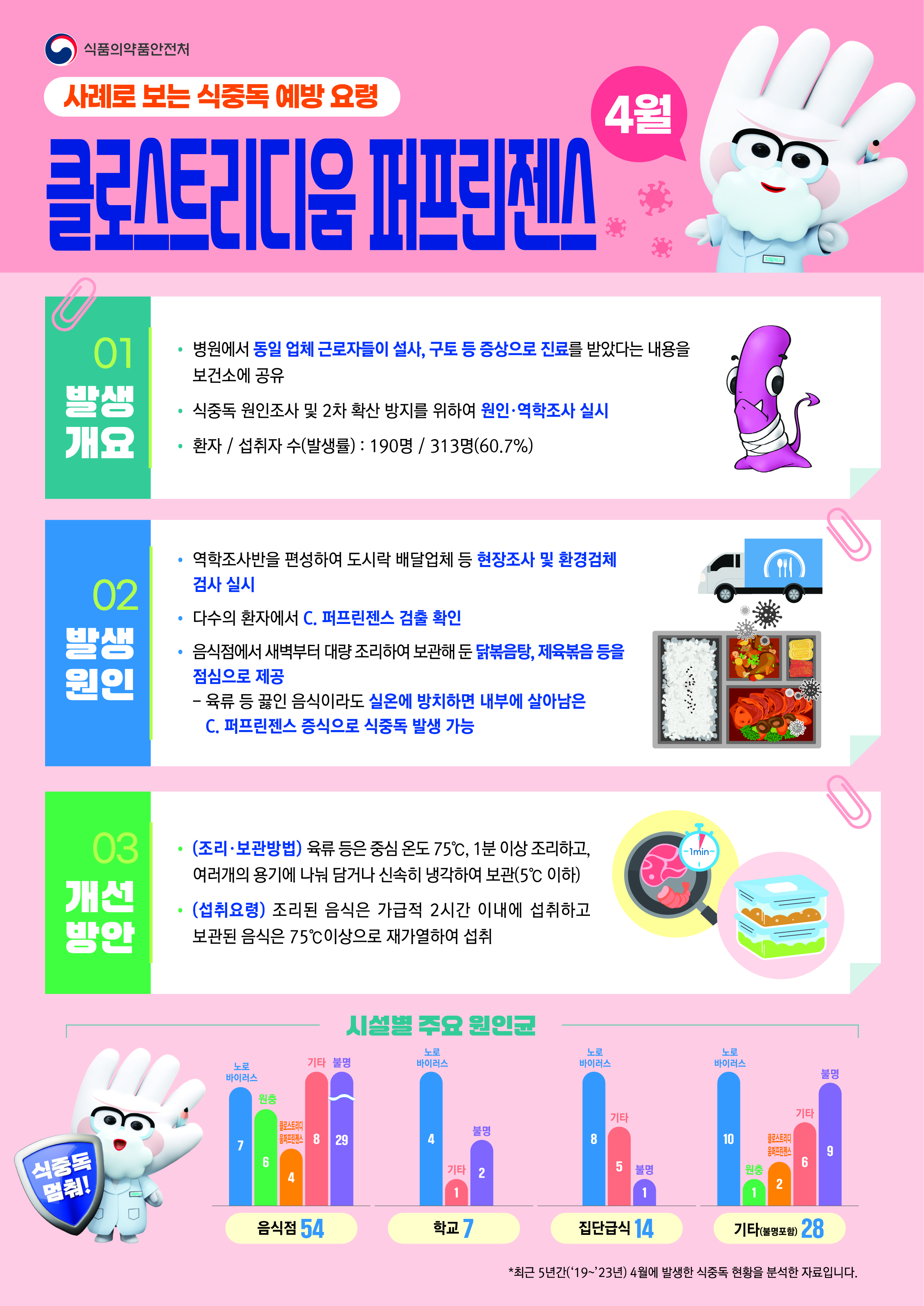 사례로 보는 식중독 예방 요령(최근 5년간 4월에 발생한 식중독 현황)을 알려드리니 참고하여 주시기 바랍니다.