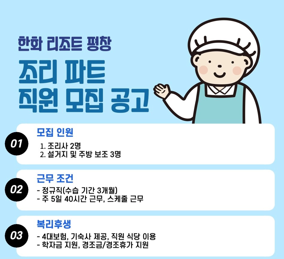★한화리조트 평창 조리 직원 모집합니다★
