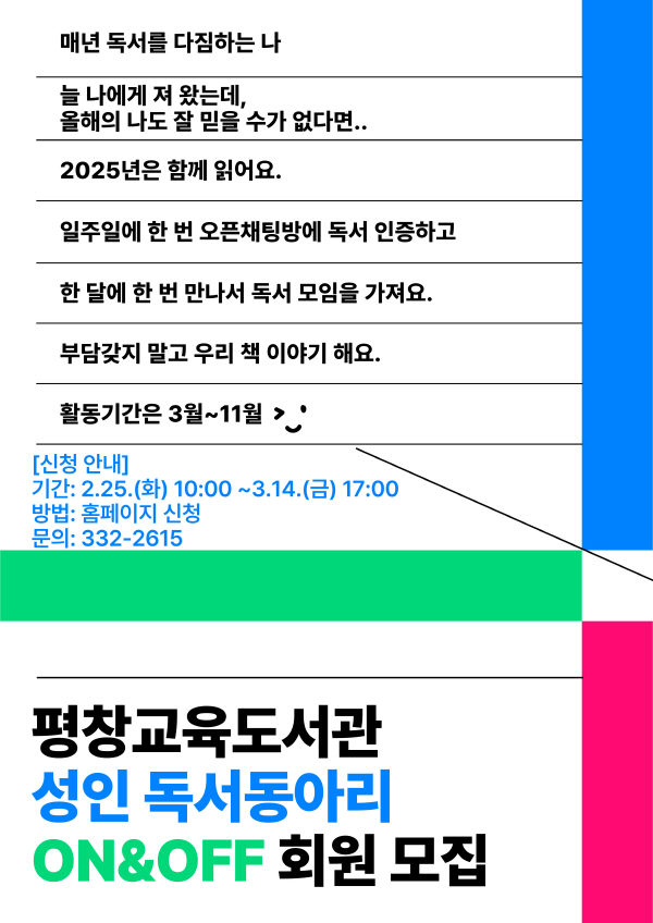 [평창교육도서관] 성인 독서동아리 ON&OFF 회원 모집