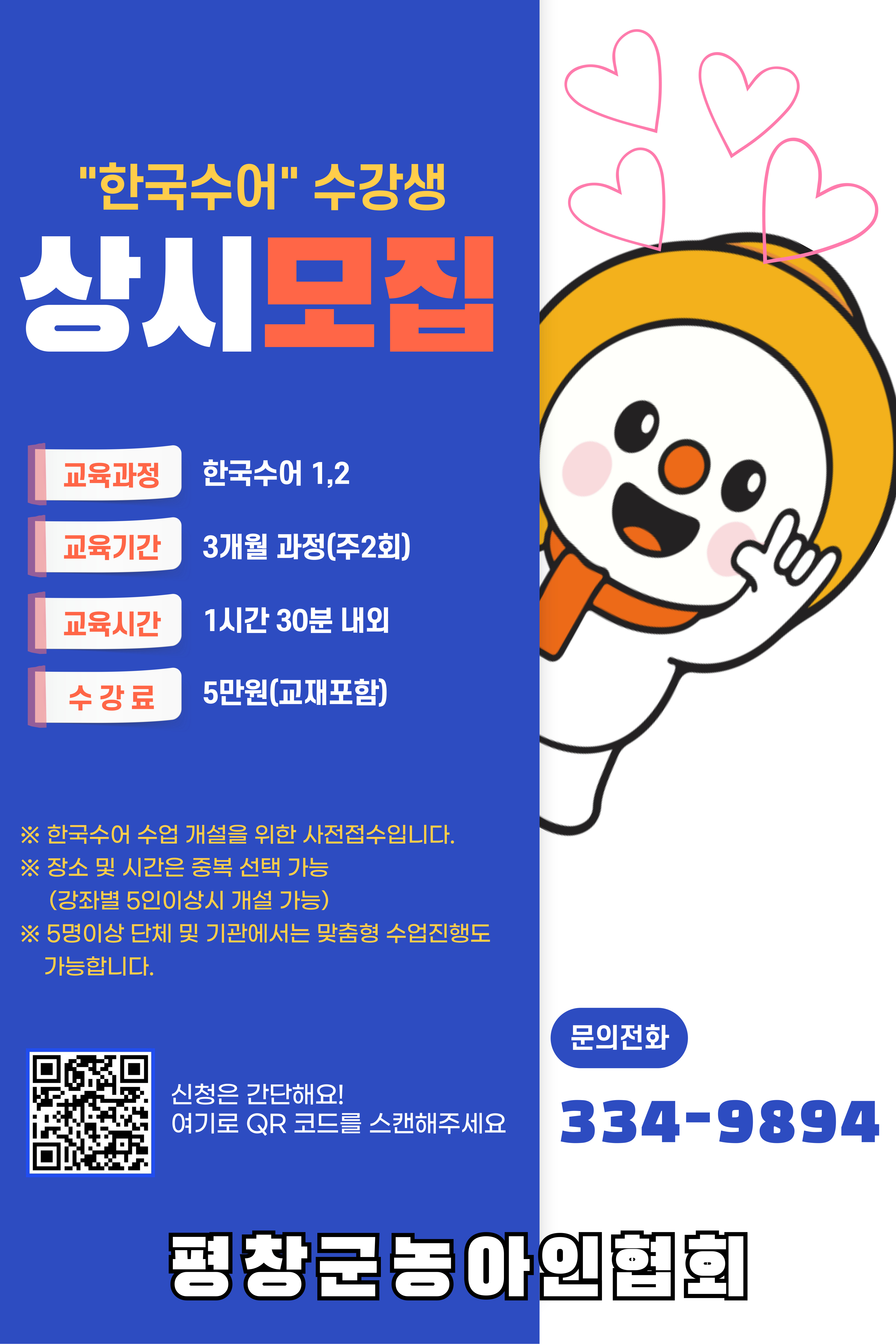 *한국수어 수업개설을 위한 사전접수 입니다. (QR코드)