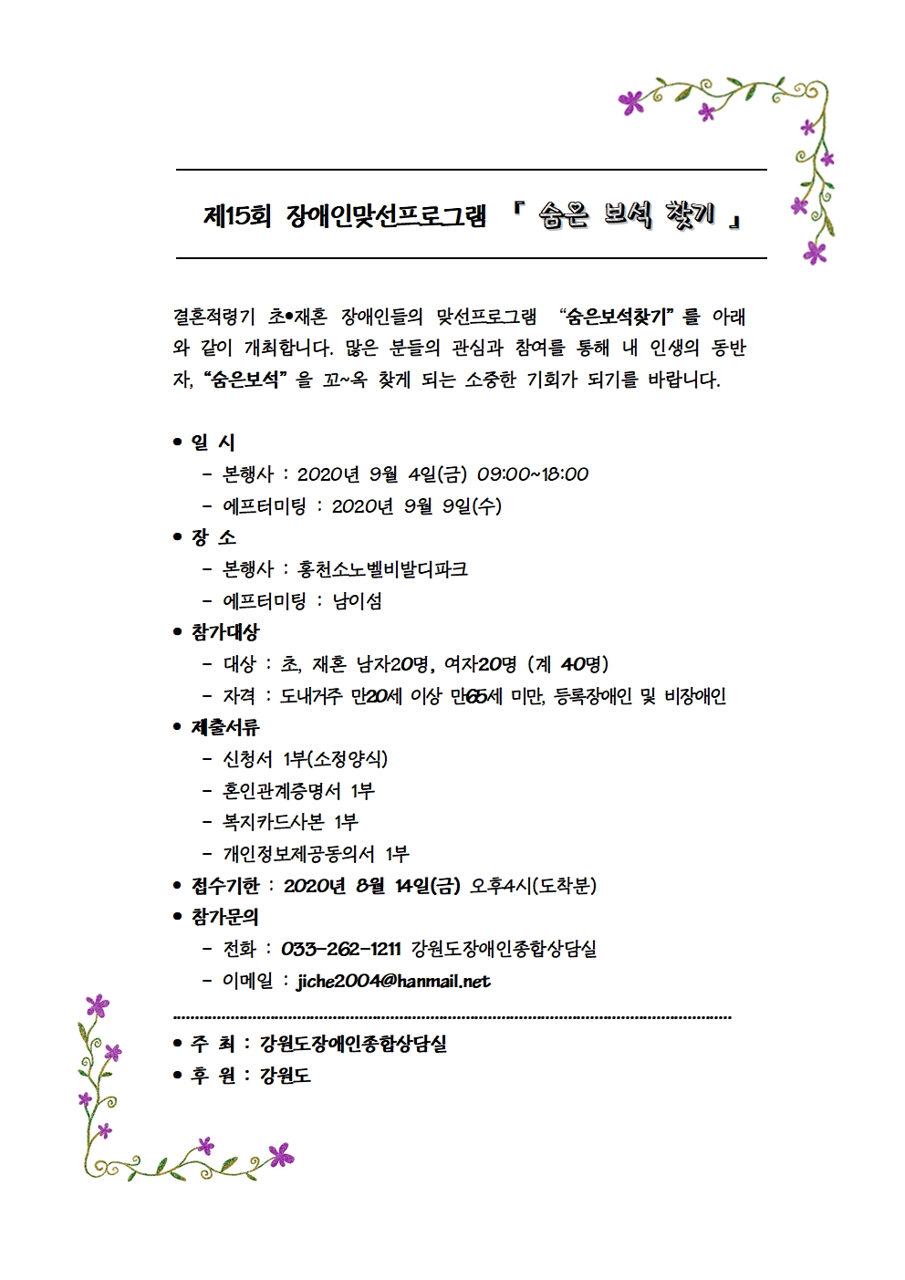 2020 맞선프로그램 "숨은보석찾기" 개최 안내