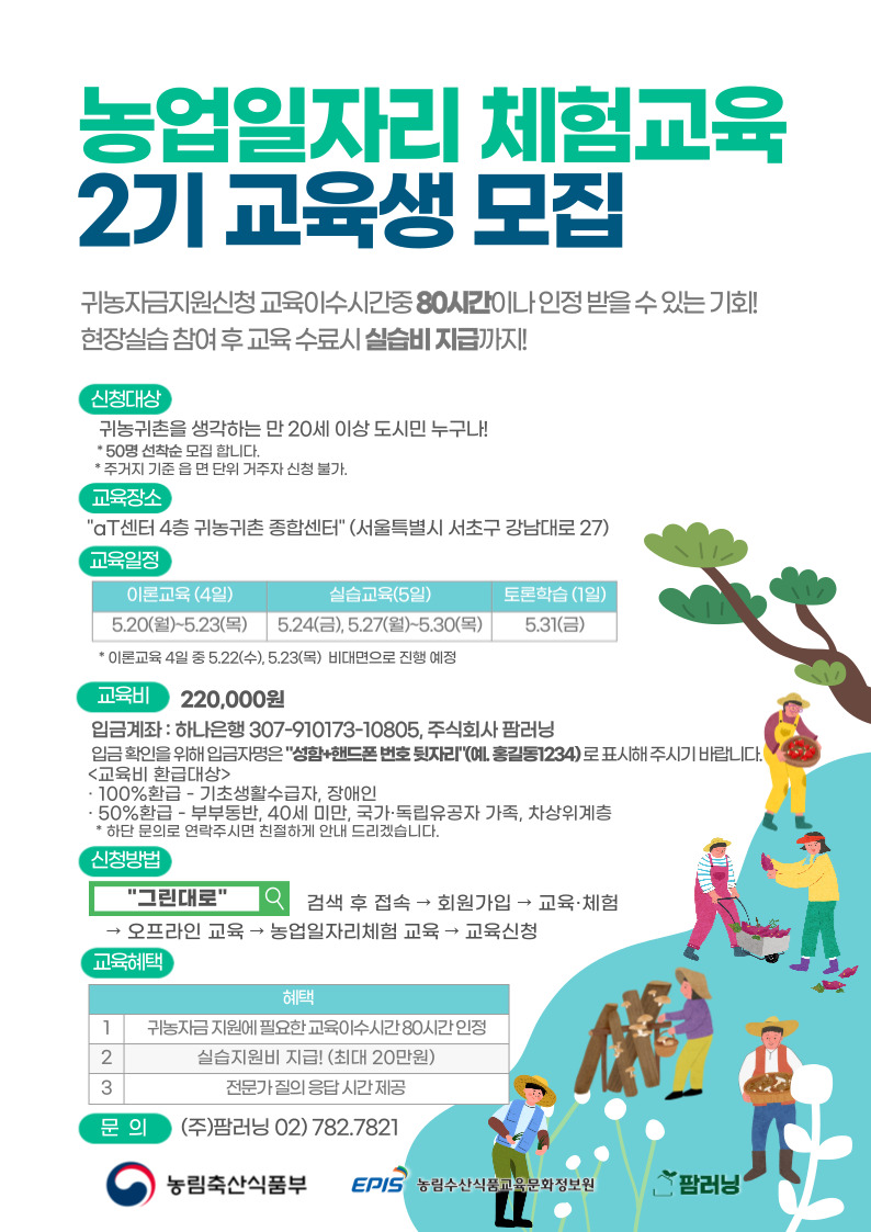 안녕하세요 농업일자리 체험교육 2기 모집합니다!