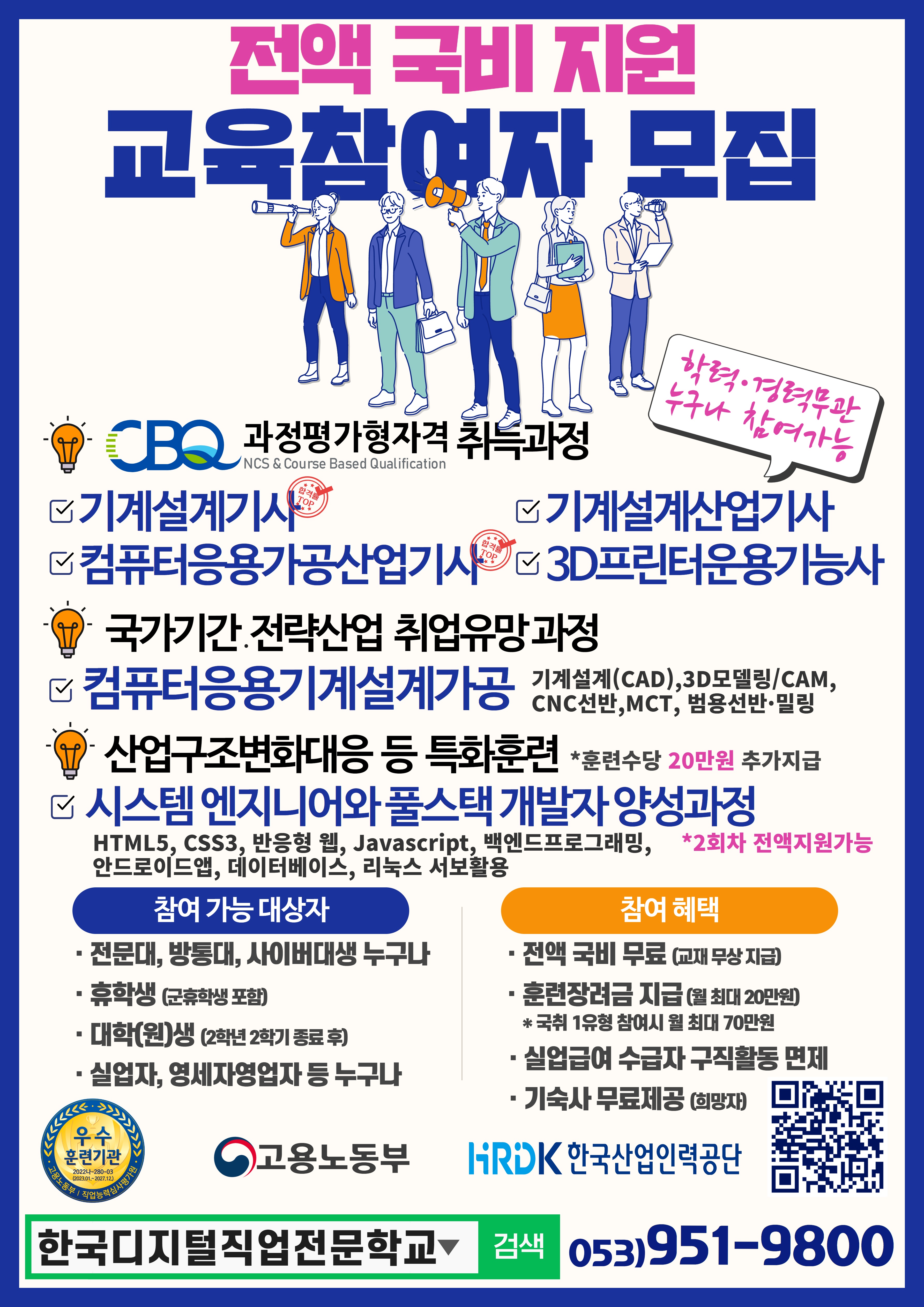 [고용노동부 민간위탁 직업훈련] 국비무료 국가기술자격 취득 교육생 모집