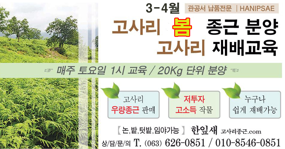 고사리재배,고사리종근,고사리뿌리,고사리종자,고사리,고사리모종,고사리재배교육,한잎새,귀농작물 분양 안내.jpg