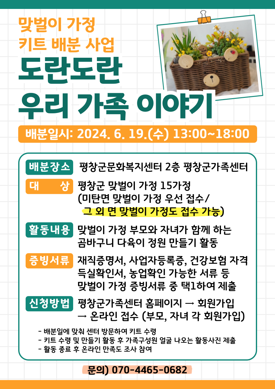 [도란도란 우리 가족 이야기(맞벌이가정 키트배분 사업)] 대상자 모집