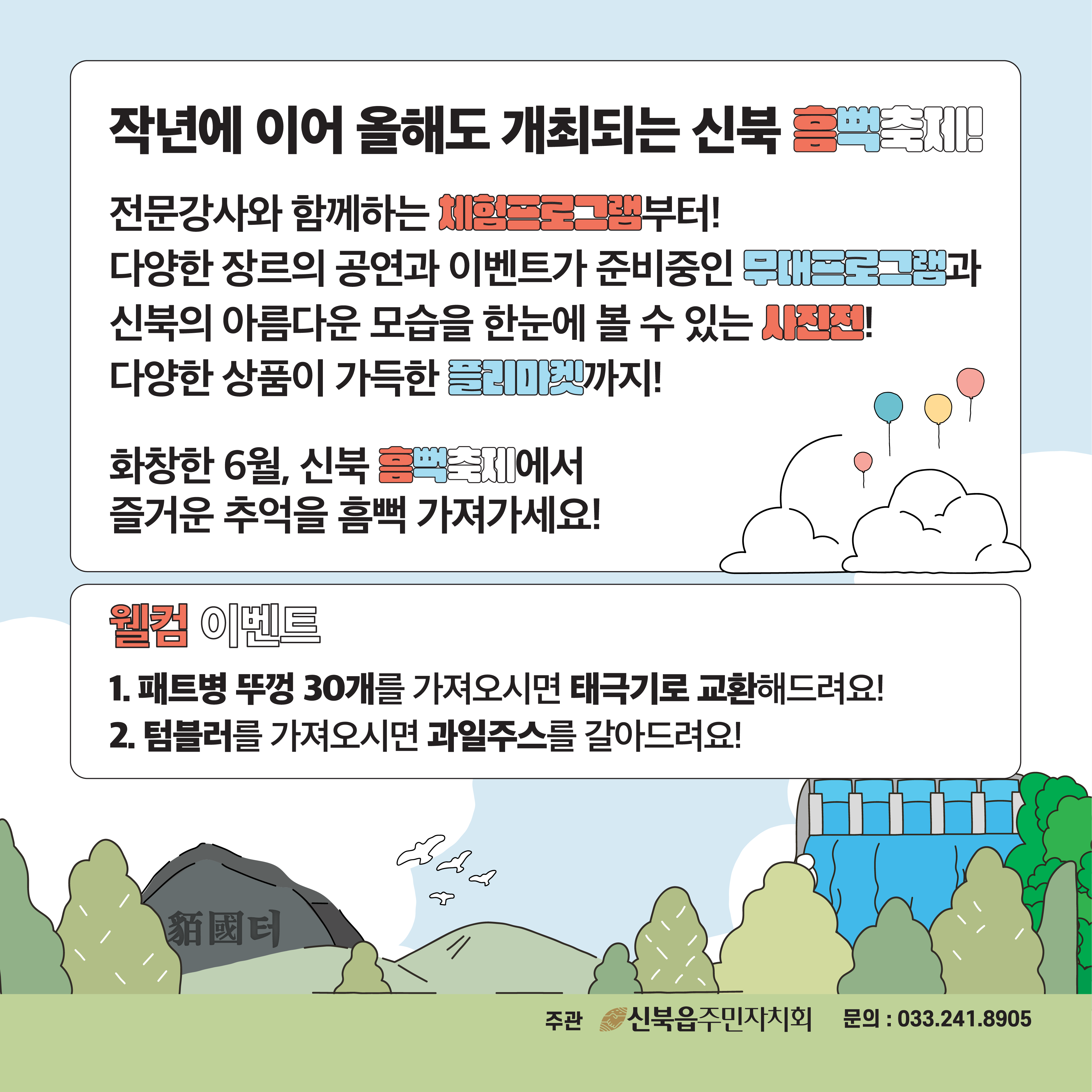 #신북흠뻑축제 #환경사랑 #웰컴이벤트 #페트병뚜껑 #텀블러 #무대공연 #체험존 #사진전 #플리마켓