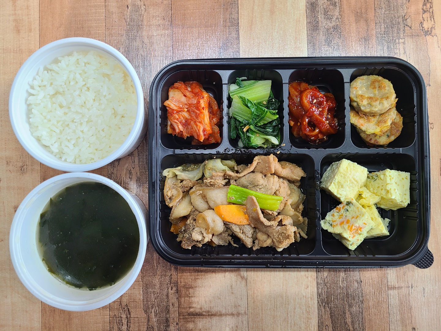 6가지 반찬과국,밥으로 구성되어 있습니다.