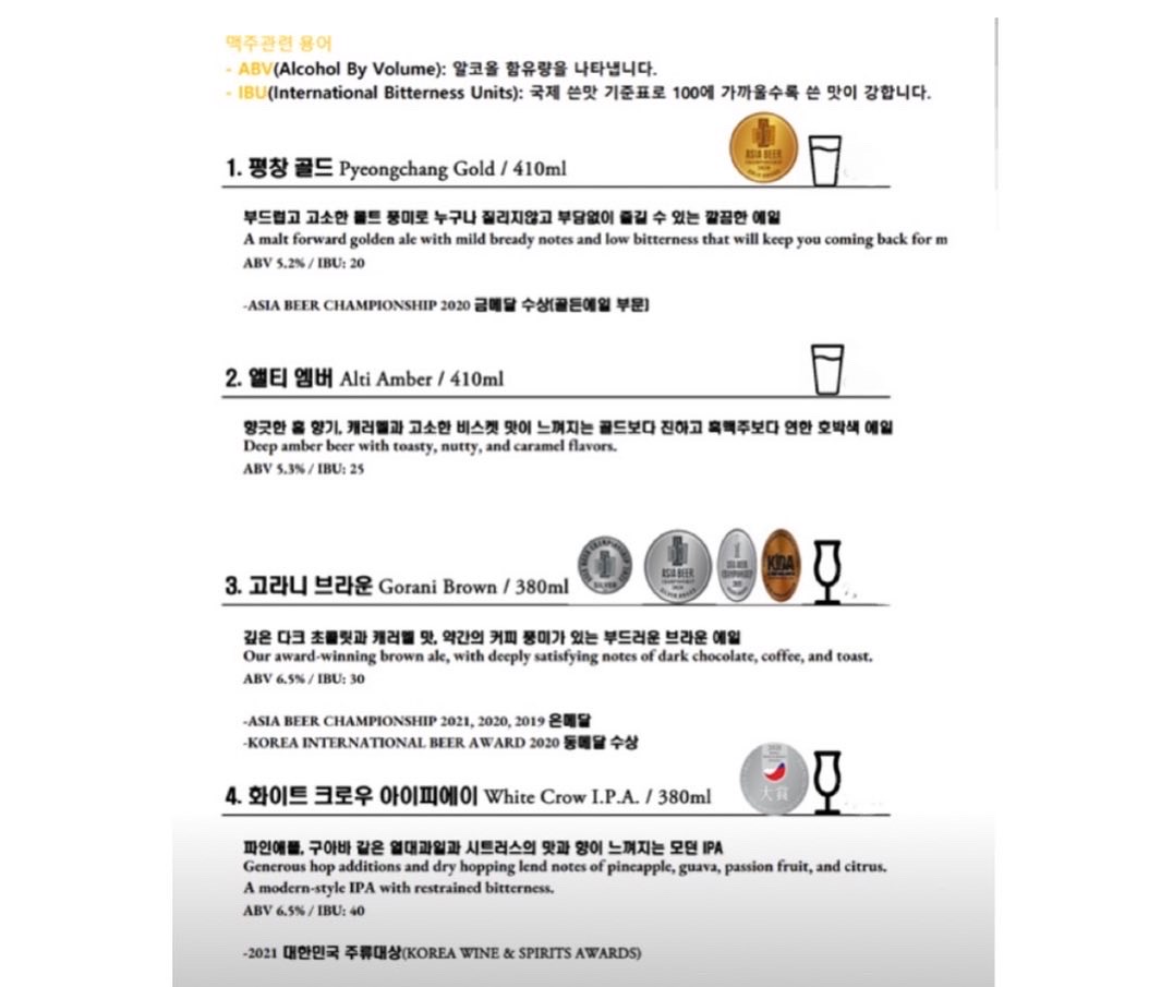 [평창골드•앨티엠버•고라니브라운•화이트크로우IPA]