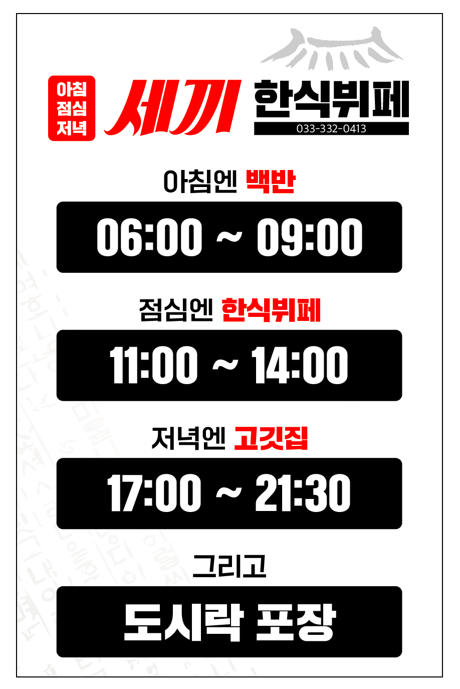 세끼한식뷔페식당이 저녁에는 수입소고기 전문점으로 운영합니다