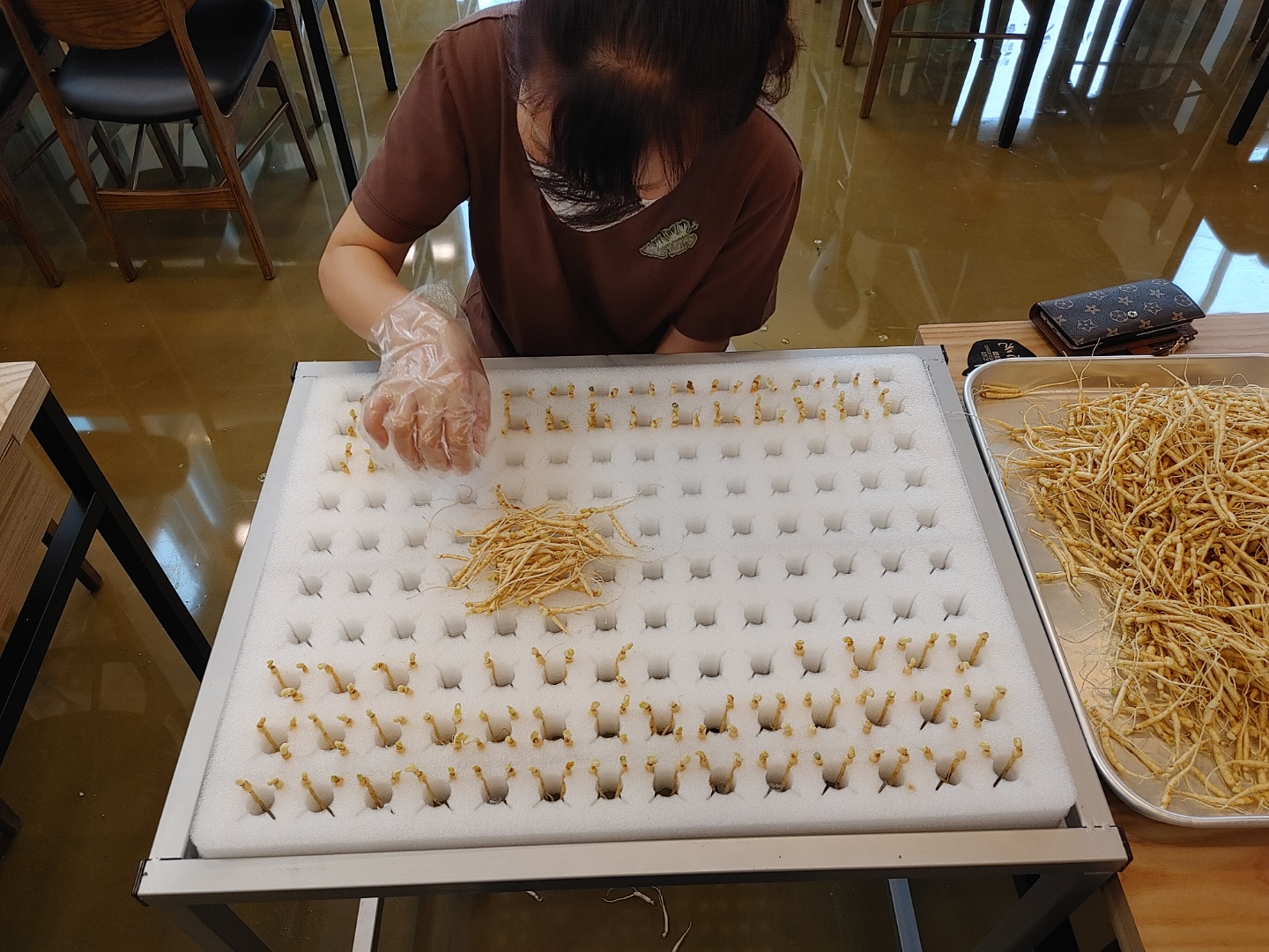1년근 뿌리를 세척 후 3시간이면 3,500뿌리를 심을 수 있고 일주일이 지나면 새싹이