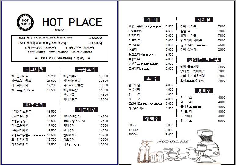 오늘자로 일부 메뉴와 가격이 변경되었습니다.